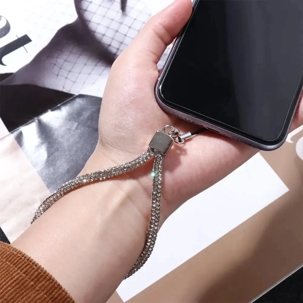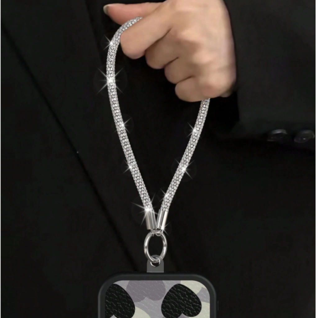 Corrente de mão de strass, acessório para colocar no celular e deixar mais estiloso. Cordão brilhante com pedras de strass;