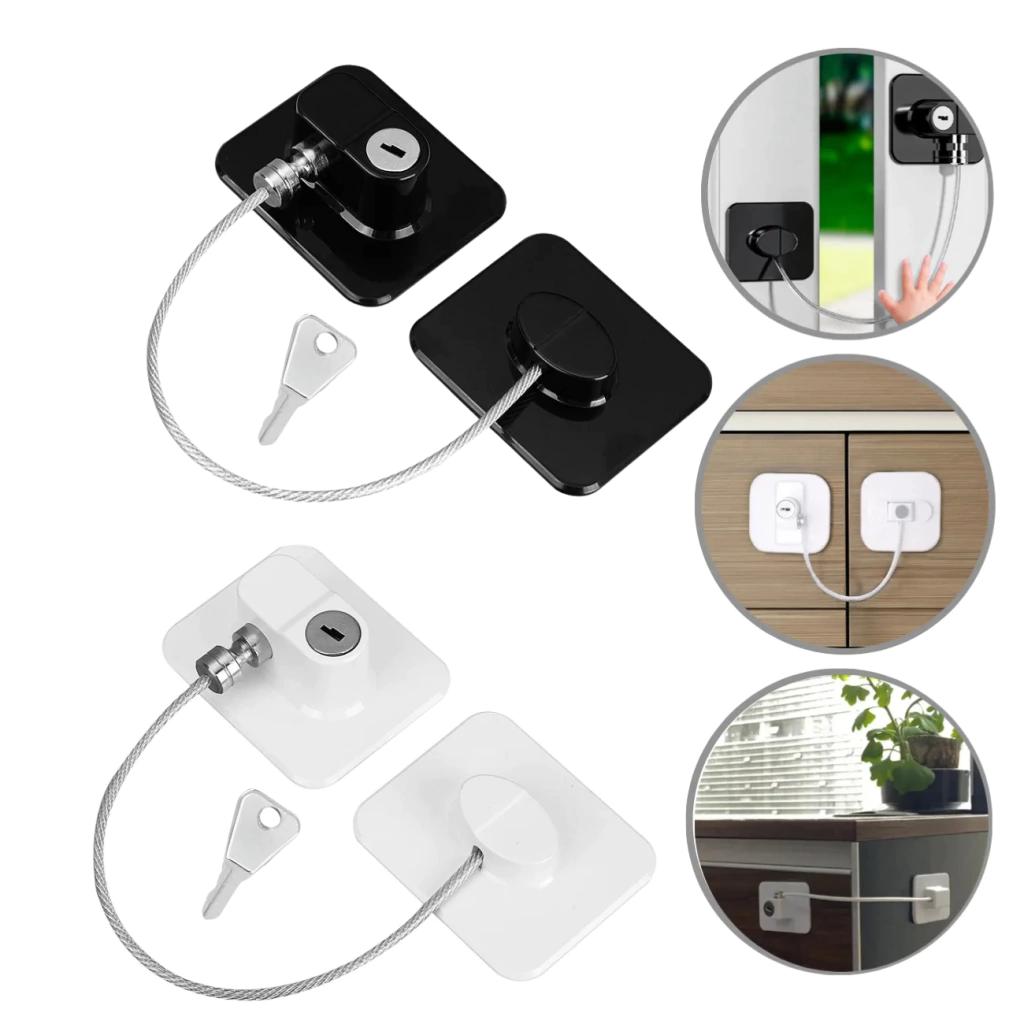 Trava de segurança cadeado com chave, ótima opção para adaptar a casa na fase em que o bebê começa engatinhar e andar, impedindo-o de abrir gavetas, portas, janelas ou armários;