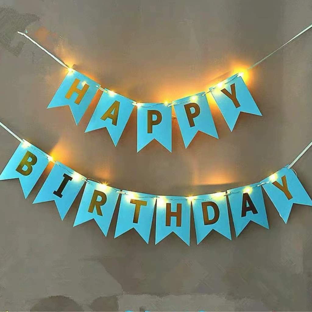 Varal letreiro "Happy Birthday" decorativo com luz;
